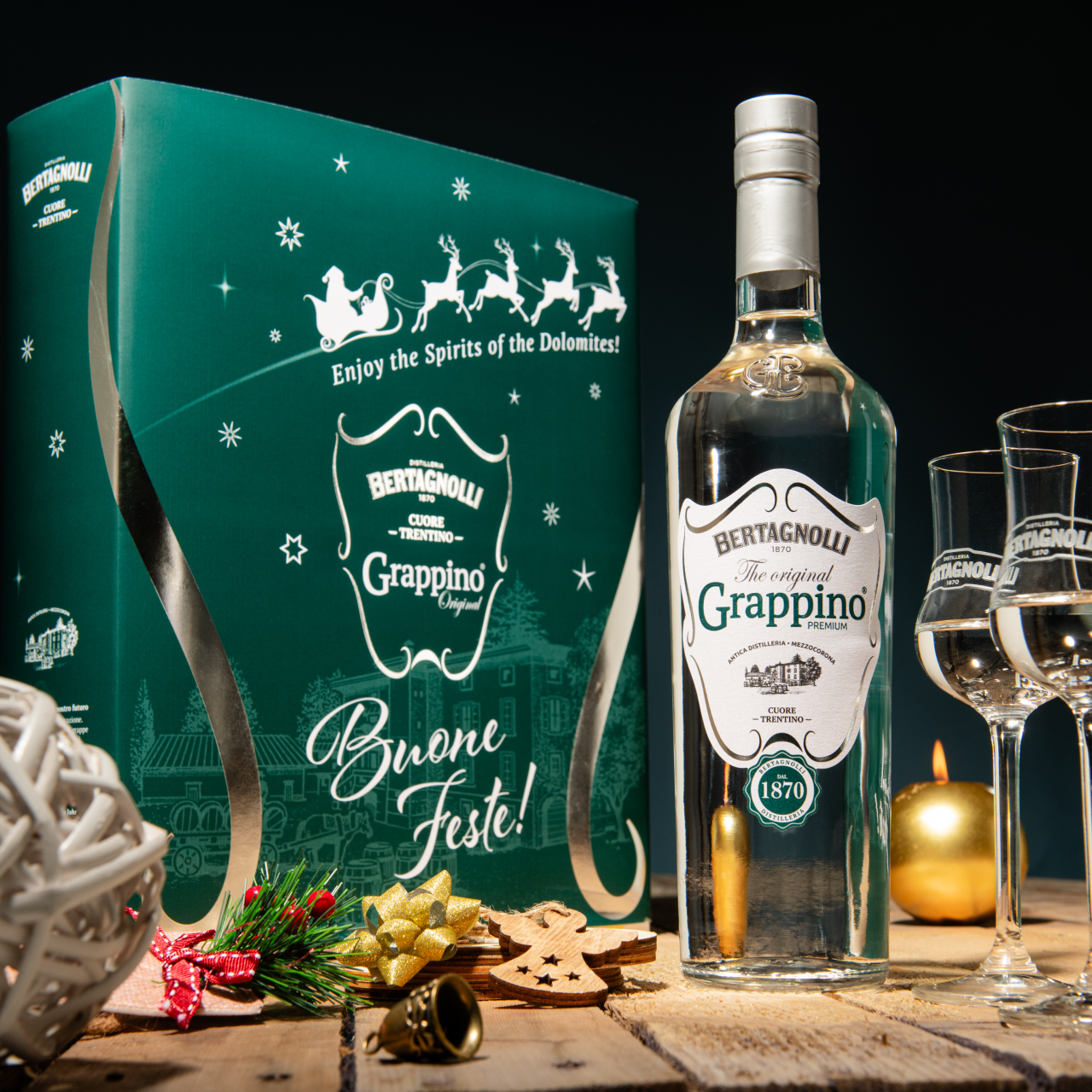 Christmas Box Grappino® Original Premium with two grappa glasses